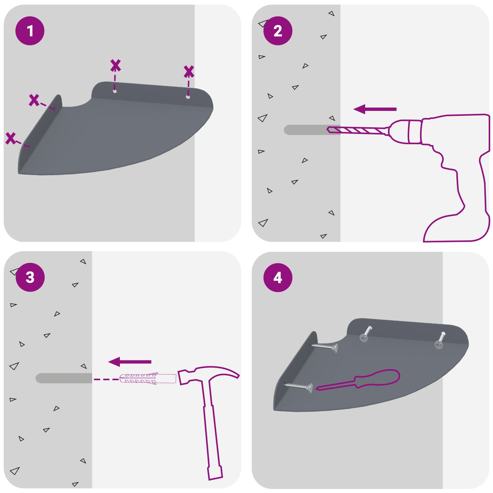 • Schroeven en pluggen voor montage in de muur zijn niet inbegrepen. Wij adviseren schroeven en pluggen te gebruiken die specifiek geschikt zijn voor uw muren.