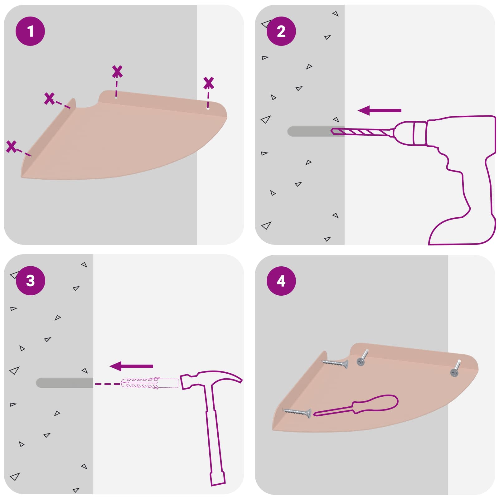 • Schroeven en pluggen voor montage in de muur zijn niet inbegrepen. Wij adviseren schroeven en pluggen te gebruiken die specifiek geschikt zijn voor uw muren.